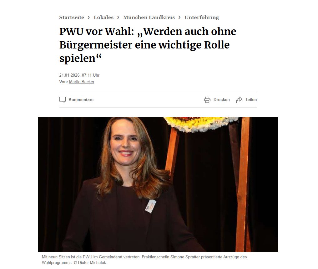 PWU Unterföhring im Münchner Merkur 21.01.2026