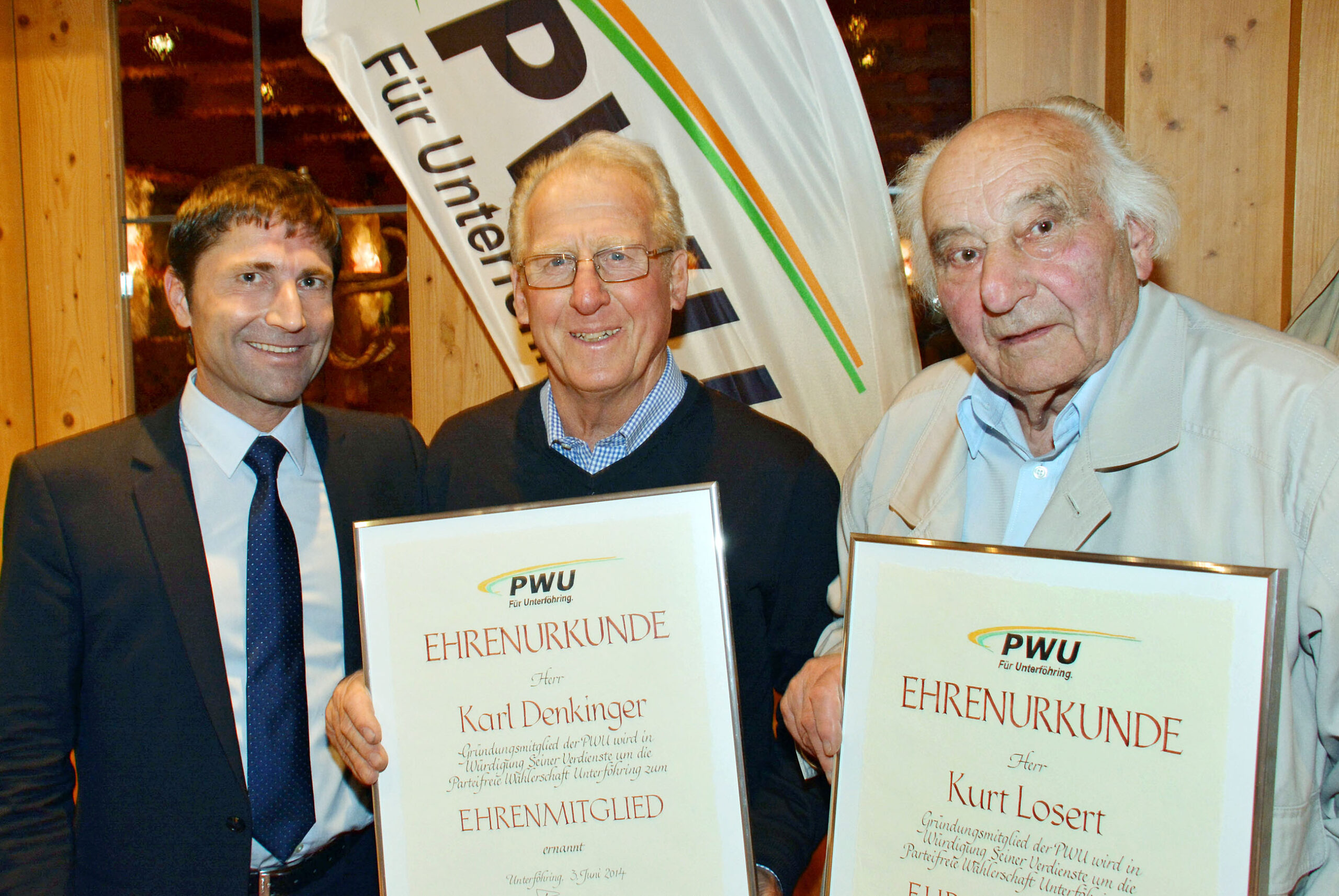 Seit Jahrzehnten engagieren sich die beiden Unterföhringer Originale in der PWU, sind für Funktionäre und Gemeinderäte stets wertvolle Ratgeber und die treuesten Gäste der diversen PWU-Veranstaltungen. Die Versammlung feierte das Duo nach der Ernennung zu Ehrenmitgliedern durch einen Beschluss der Versammlung mit stehenden Ovationen.