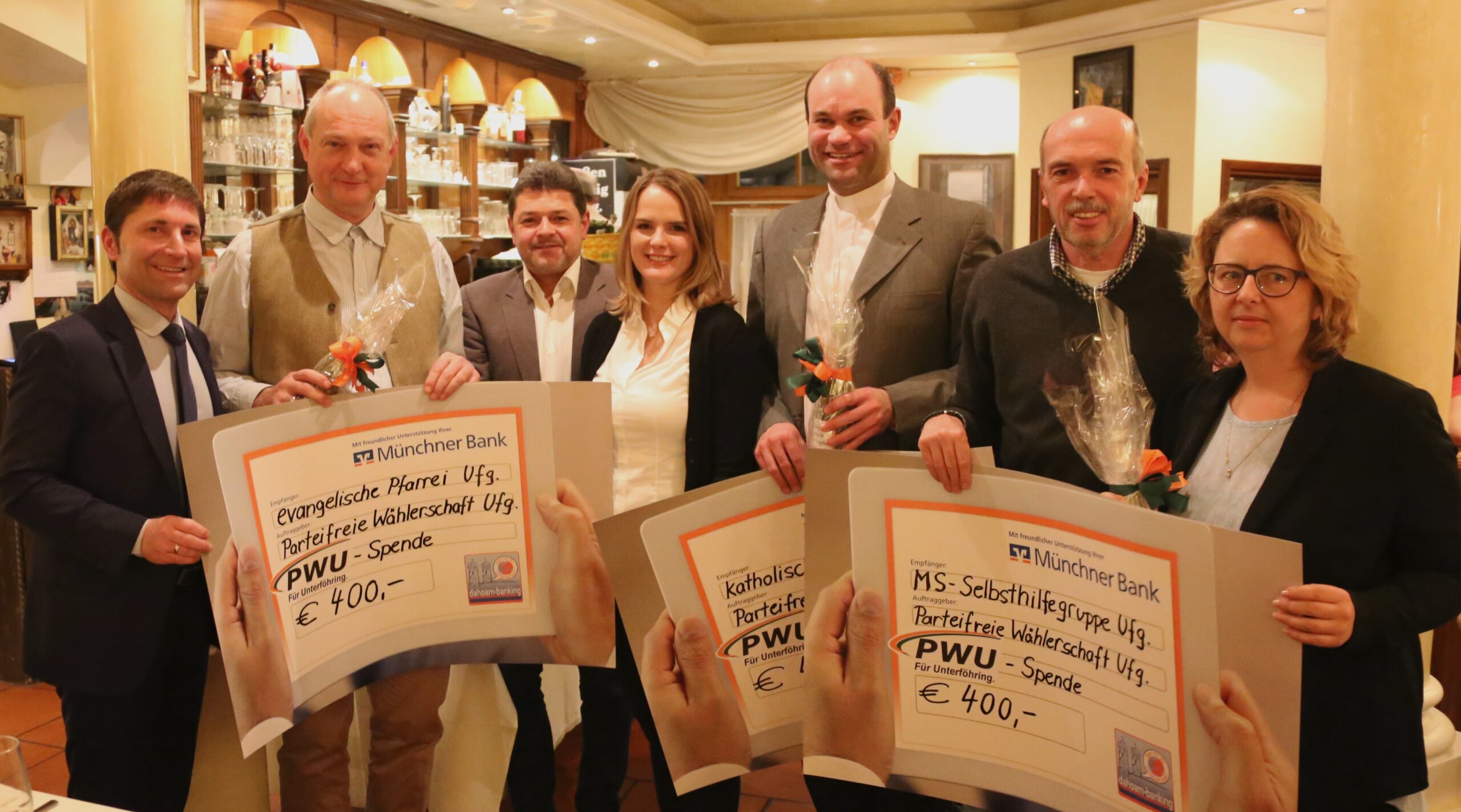 PWU-Jahresauftakttreffen: Spendenübergabe an die katholische und evangelische Kirchengemeinde, sowie an die MS- Selbsthilfegruppe Unterföhring